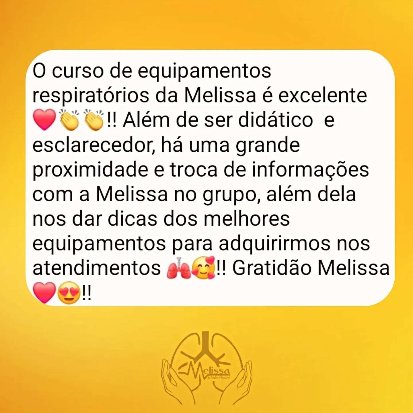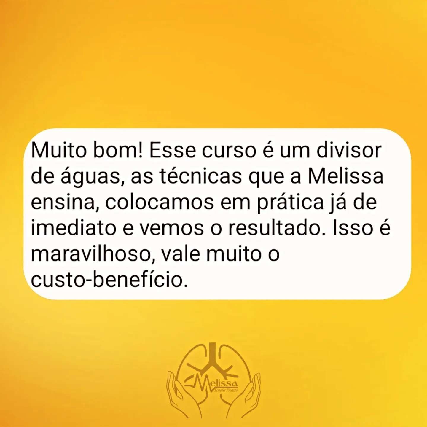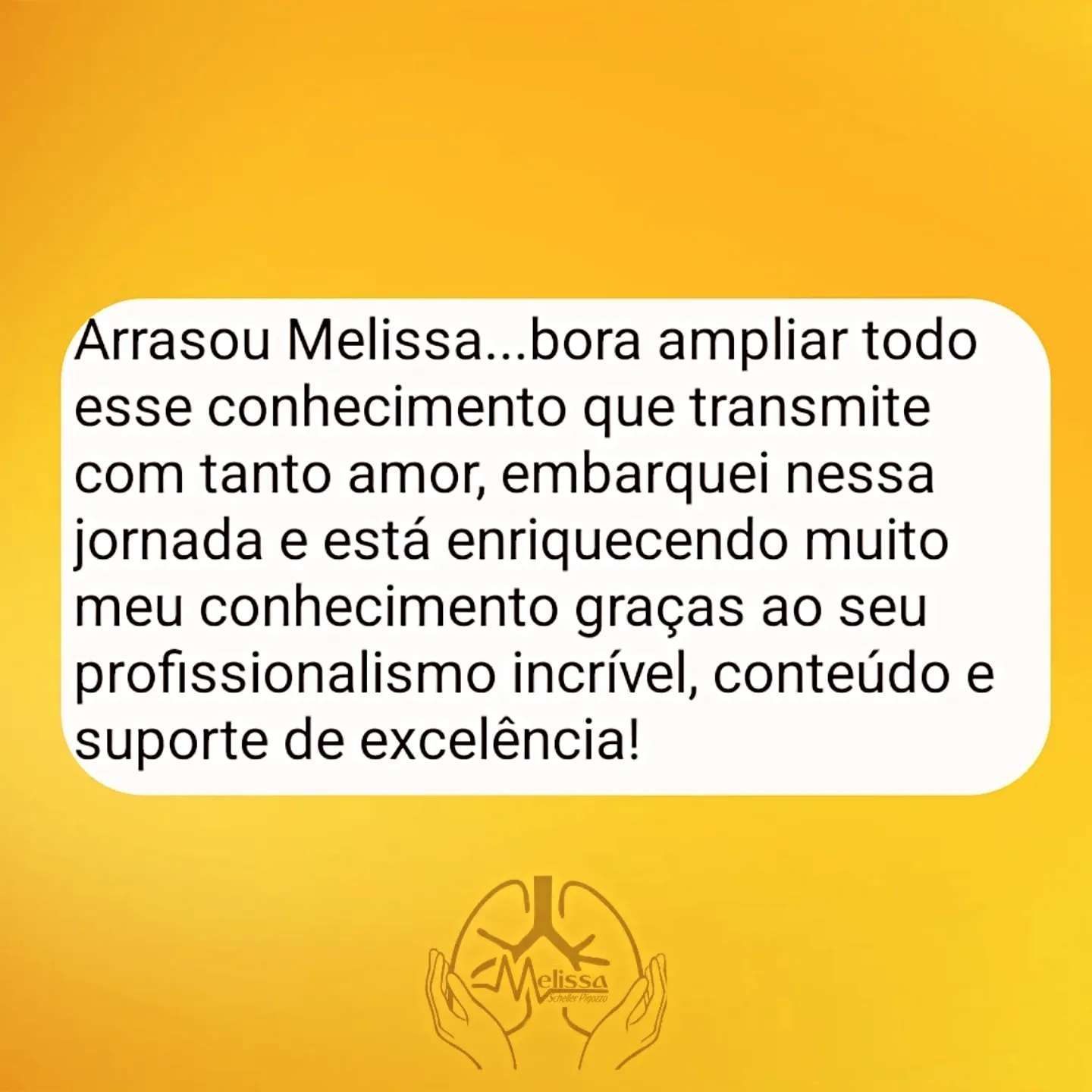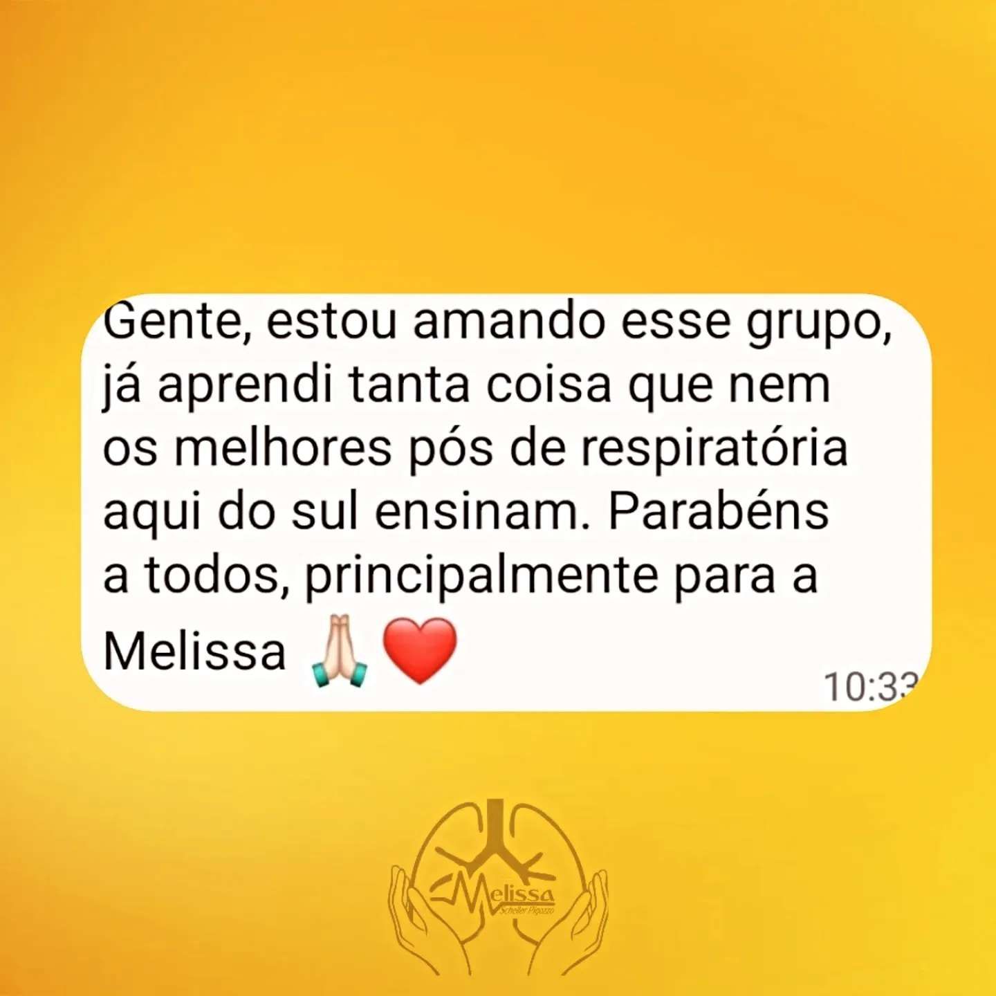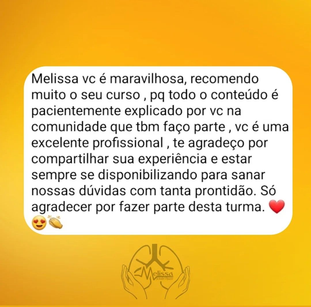 Tudo bem? Eu me chamo Melissa Scheller Pigozzo e sou fisioterapeuta com título de ESPECIALISTA em FISIOTERAPIA RESPIRATÓRIA pelo COFFITO.